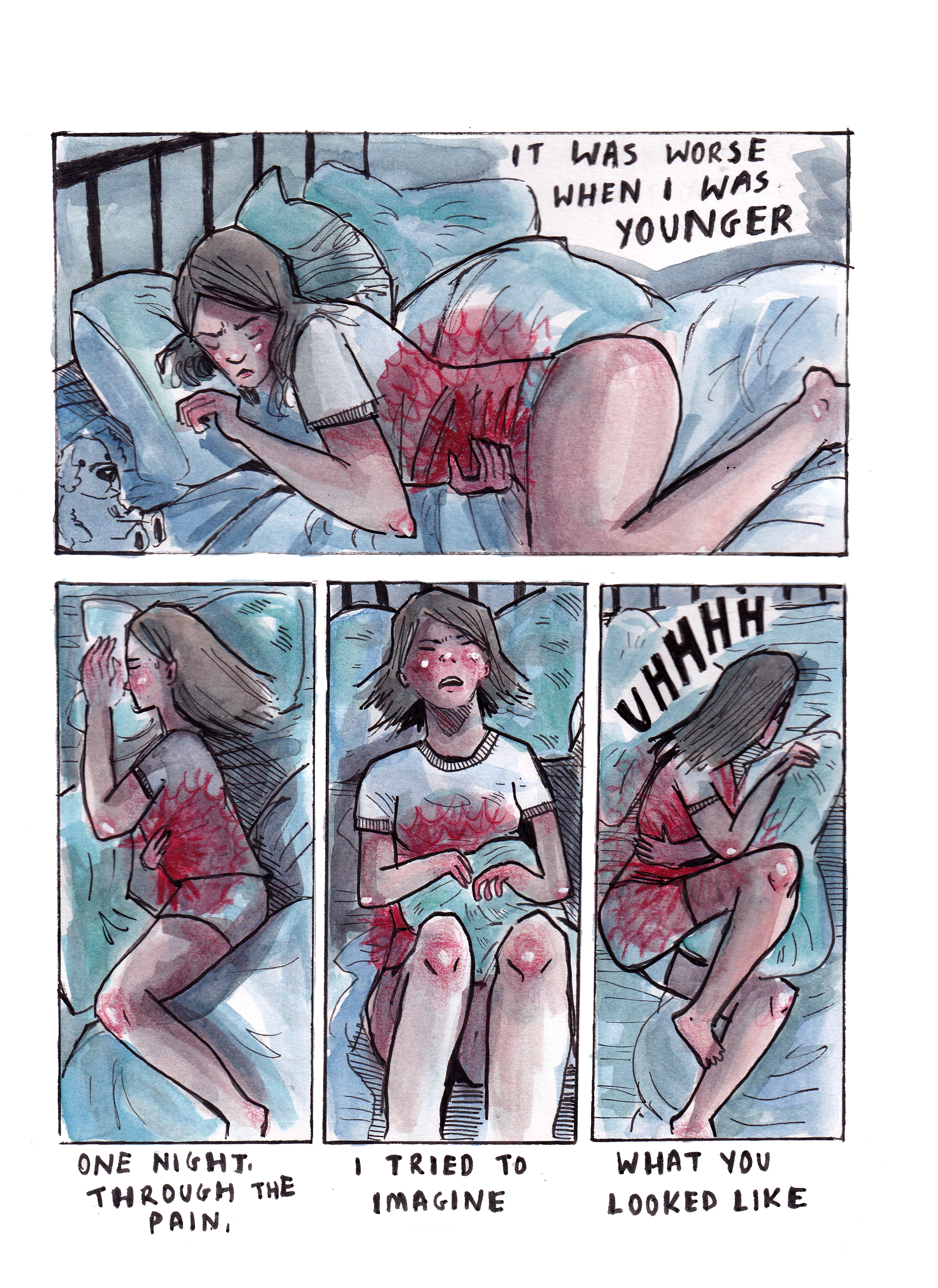 A self-published mini-comic reflecting on my experiences growing up with intense period pain and how this has influenced my way of thinking/concept of time (2021)