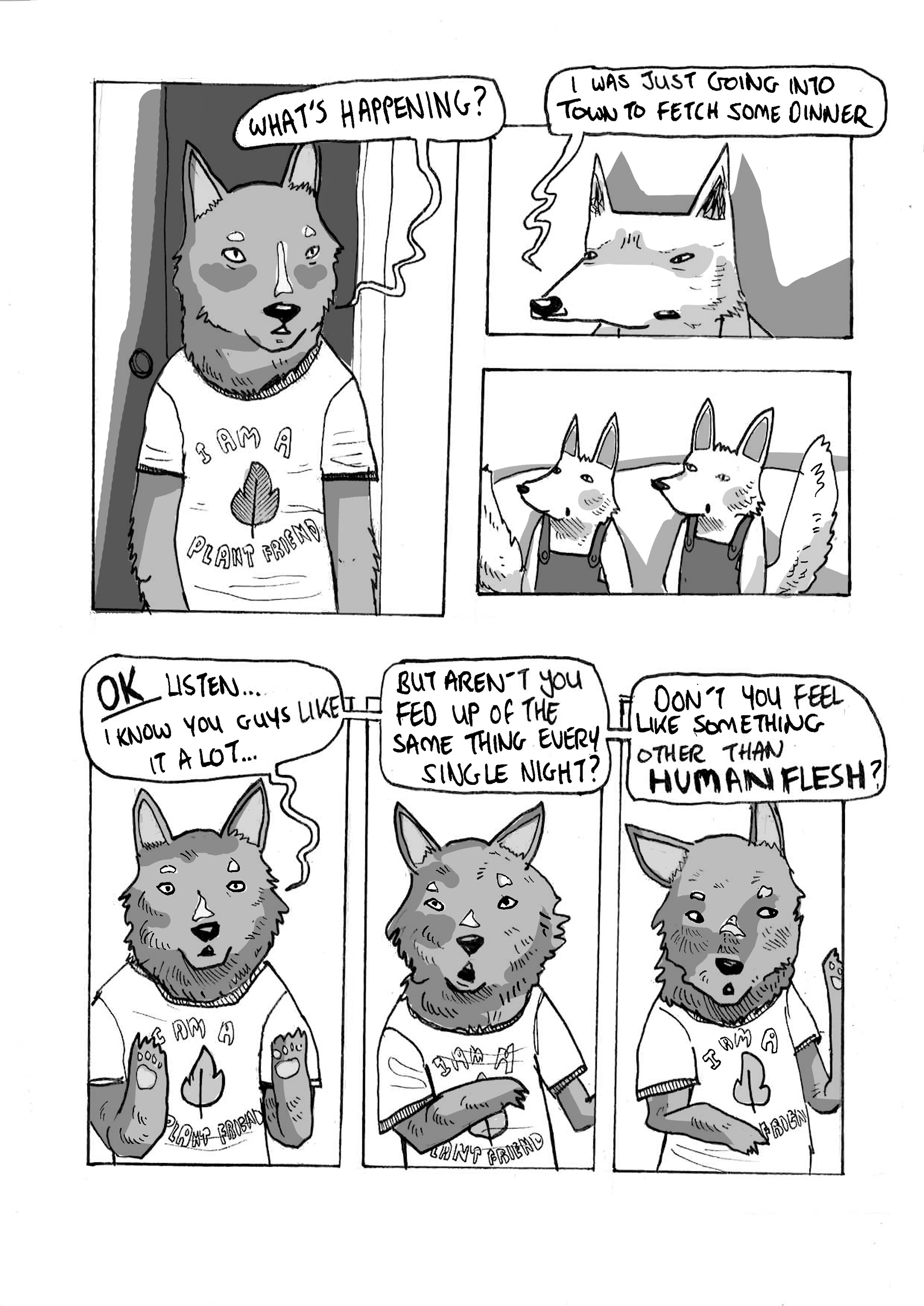 Two preview pages from a short comic published in the Vagabond Comic Collective, Issue 8